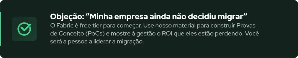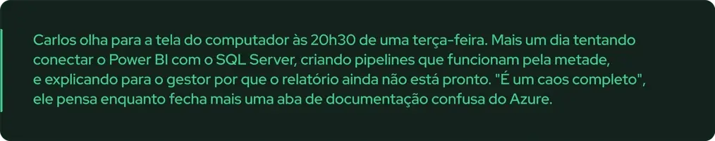 Enquanto você tenta conectar data warehouse com lakehouse, gerenciar pipelines separados, fazer o BI conversar com a engenharia de dados, e ainda explicar para gestores por que precisa de 6 ferramentas diferentes para fazer o que deveria ser simples… suas empresas estão perdendo competitividade e você está perdendo oportunidades de crescimento.